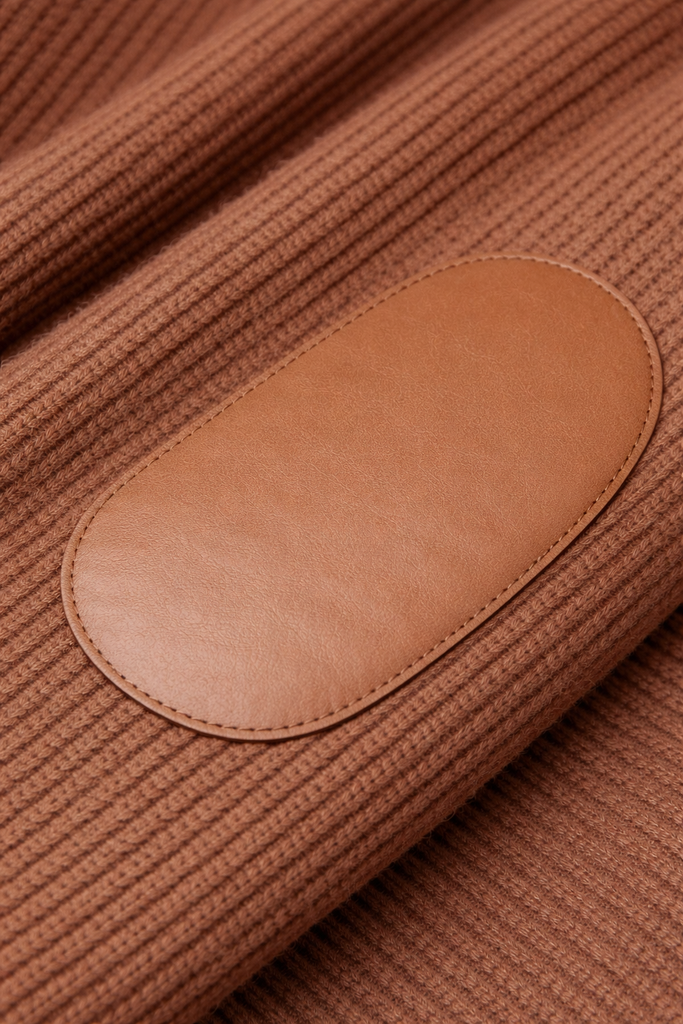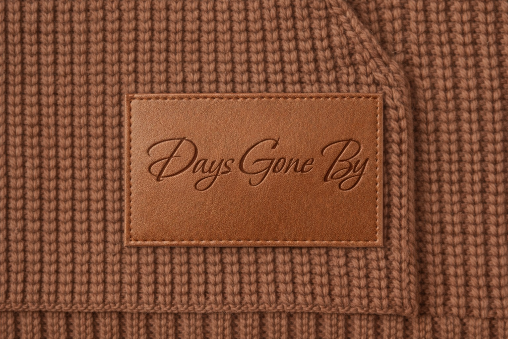 Genuine cow leather elbow patches reinforce the areas that wear first, designed to age alongside the garment. A small leather patch at the kangaroo pocket, embossed with a Days Gone By script logo, marks the piece with subtle restraint.