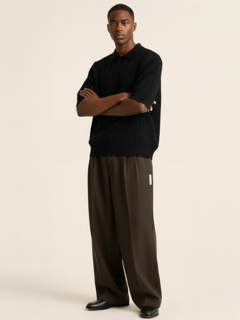 Effortlessly tailored for everyday wear. These double pleated trousers are cut from a lightweight polyester-viscose-spandex blend that’s breathable, soft, and built for movement—perfect for staying sharp without overheating. The relaxed fit and classic pleat detailing offer comfort with a refined edge, while the button-and-zipper closure keeps things polished. There are two concealed zipper pockets for added functionality. Whether you’re dressing things up or keeping it casual, these trousers rise to the occasion.